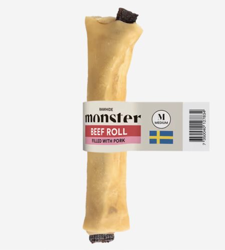 A Monster marhabőr rágócsont marhaszívvel töltve egy prémium minőségű, természetes kutyacsemege, amely hosszan tartó rágási élményt és kiváló ízt biztosít.