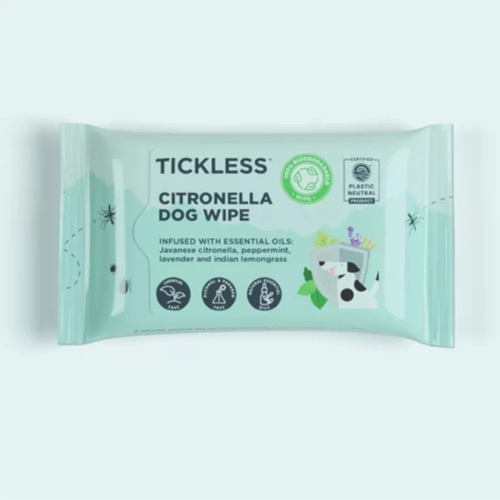 Tartsd távol a rovarokat a Tickless® természetes törlőkendő segítségével, amely egy környezet- és állatbarát megoldás a szabadban való rovarmentes kikapcsolódáshoz. Biológiailag lebomló nedves törlőkendőink jávai citronella, borsmenta, levendula és indiai citromfű illóolajok keverékével vannak átitatva, ami biztonságos, hatékony és kellemes illatú megoldást nyújt a kullancsok, bolhák és szúnyogok természetes távoltartására.